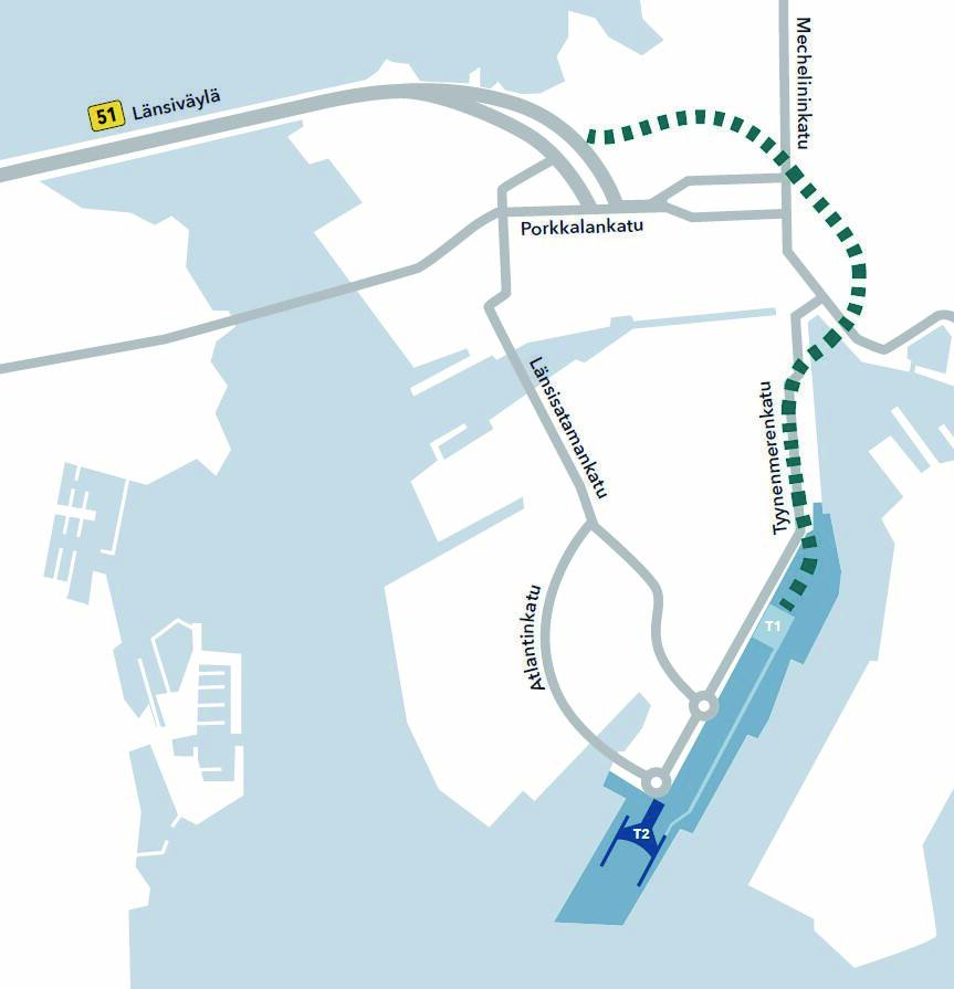 Jätkäsaari Maritime Centre: The new Maritime Centre will be built in the place of the current T1 terminal. In addition to terminal facilities, the new terminal will be designed to house commercial, office and parking spaces and services. The Maritime Centre is closely linked to the construction of the harbour tunnel, as the southern opening of the tunnel is planned to be located under the new Maritime Centre. Therefore, their construction schedule will be coordinated.